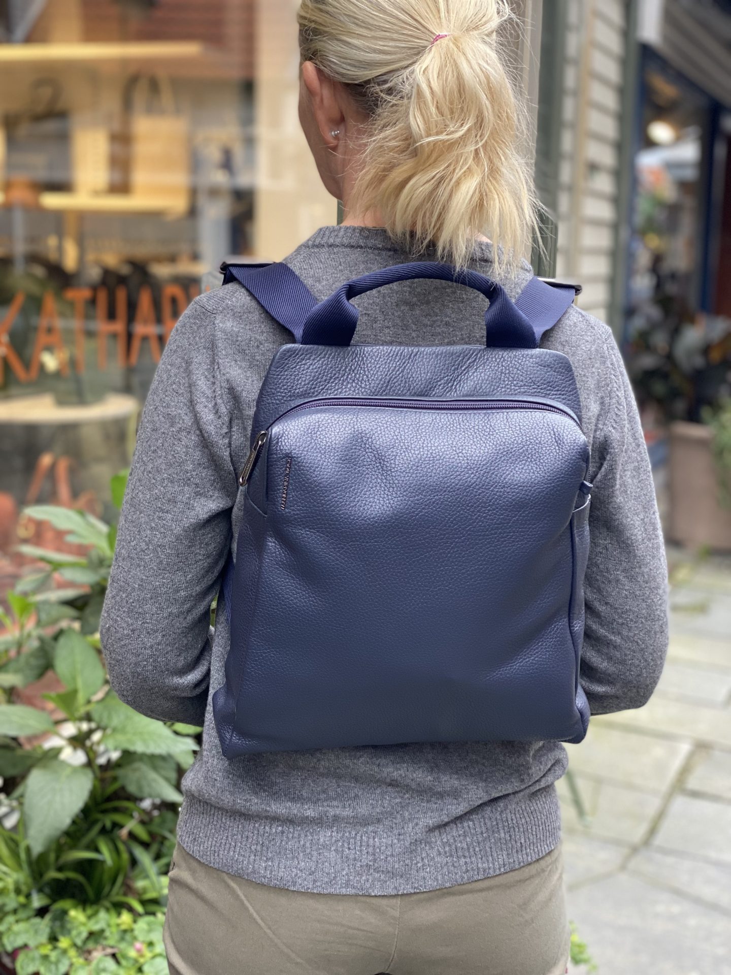 Denne sekken fra Mandarina Duck er laget av fantastisk mykt kalveskinn. Den er pyntet med metall logo i front og det følger med en avtagbar charm som også kan brukes som nøkkelring. Sekken består av et stort hovedrom som lukkes med glidelås og inneholder flere lommer. Utvendig har sekken en loddrett lomme på fremsiden og på baksiden av sekken er det plassert en glidelåslomme inn mot ryggen. Bærereimene på sekken er justerbare i lengden.