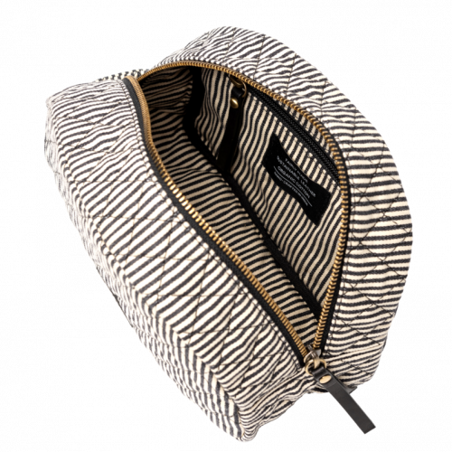 Vi er så glade for å presentere deg for vår Moon Makeup Bag, vi hyler! Halvsirkelformen kan passe for mer enn det grunnleggende – fra sjampoflasker til øyenskygge paller, you name it. Den flate basen er designet med tanke på det praktiske og betyr at skjønnhetsartiklene dine alltid sitter oppreist og at du ikke trenger å bekymre deg for at leppestiften ruller ned på gulvet! Mindre gjenstander, som hårbånd, bobby pins kan lagres sikkert i den lille glidelåslommen. Lett på grunn av det vatterte bomullsmaterialet og ferdig med et grip-n-go-håndtak, Moon Makeup Bag er det perfekte alternativet for en weekendferie.