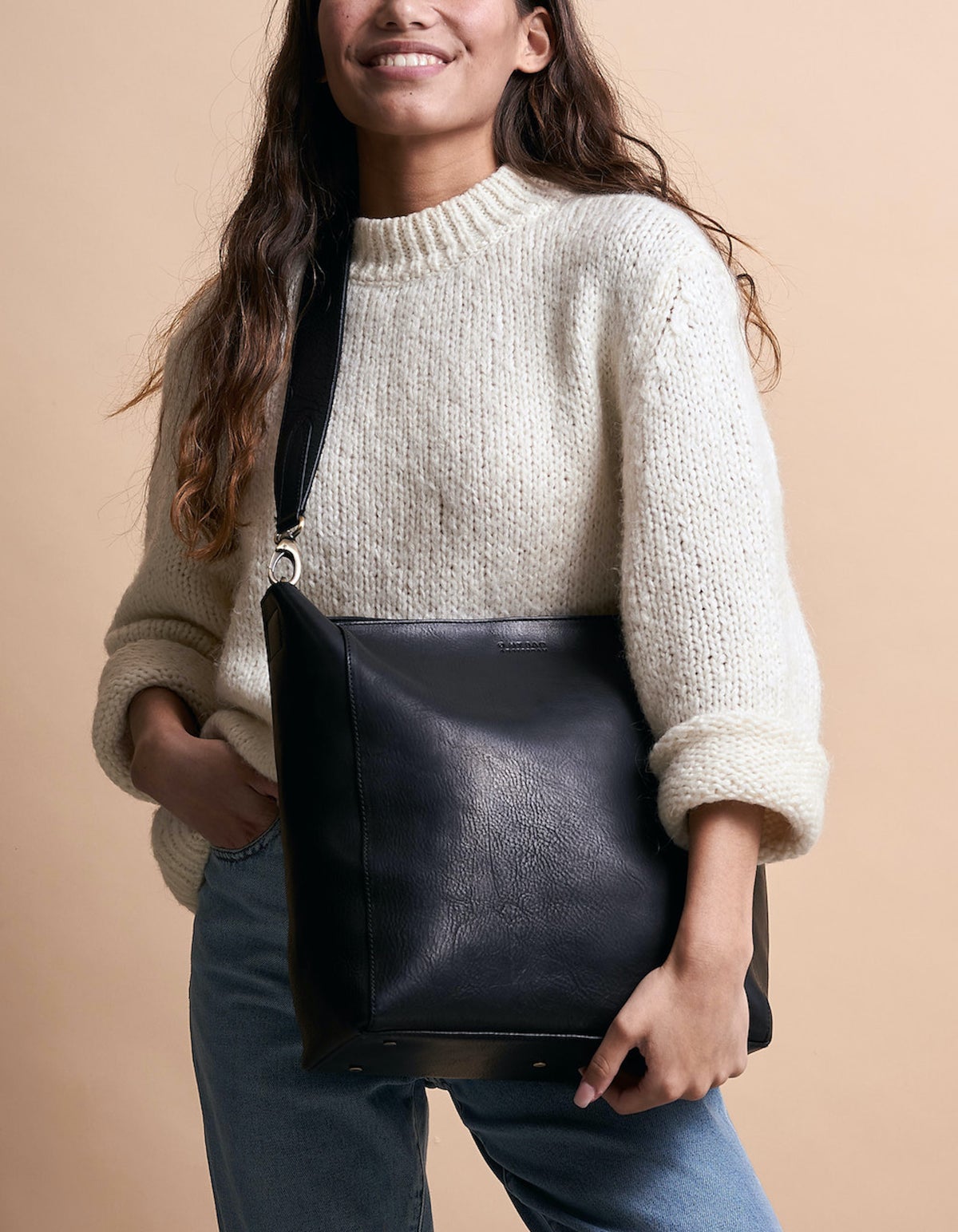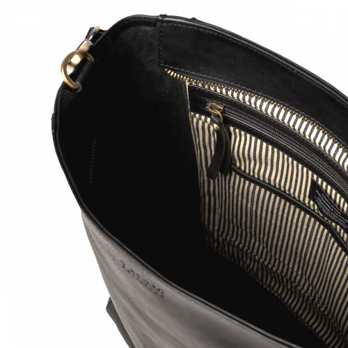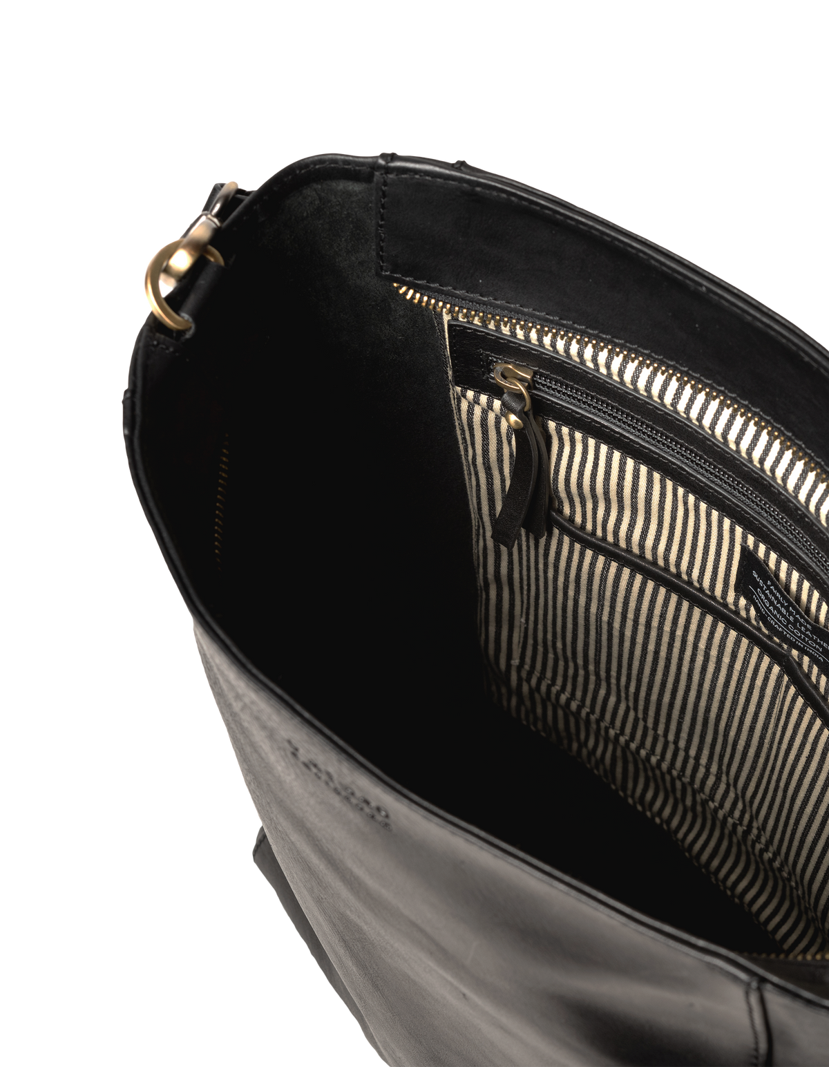 Møt Sofia: den åpenbare fortsettelsen etter suksessen til søsteren Olivia! Ta henne med til kontoret? Klart det – med en bred glidelåsåpning på toppen kan Sofia romme opptil enn 15″ bærbar PC og alle dokumentene dine. Skal du på helgetur? Hun holder orden på eiendelene dine med sine tre separate rom og en stabil bunn, slik at hun alltid står ved siden av deg. Sofia kommer med to stropper. En kort og bred, med cognacbånd for ekstra støtte; og ett lengre alternativ for crossbody-styling.
