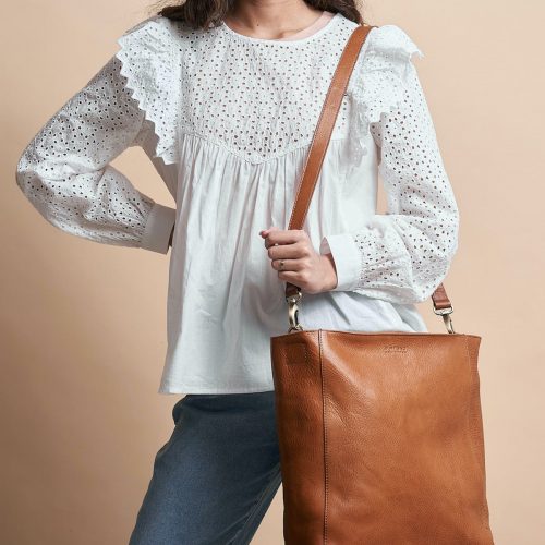 Møt Sofia: den åpenbare fortsettelsen etter suksessen til søsteren Olivia! Ta henne med til kontoret? Klart det – med en bred glidelåsåpning på toppen kan Sofia romme opptil enn 15″ bærbar PC og alle dokumentene dine. Skal du på helgetur? Hun holder orden på eiendelene dine med sine tre separate rom og en stabil bunn, slik at hun alltid står ved siden av deg. Sofia kommer med to stropper. En kort og bred, med cognacbånd for ekstra støtte; og ett lengre alternativ for crossbody-styling.