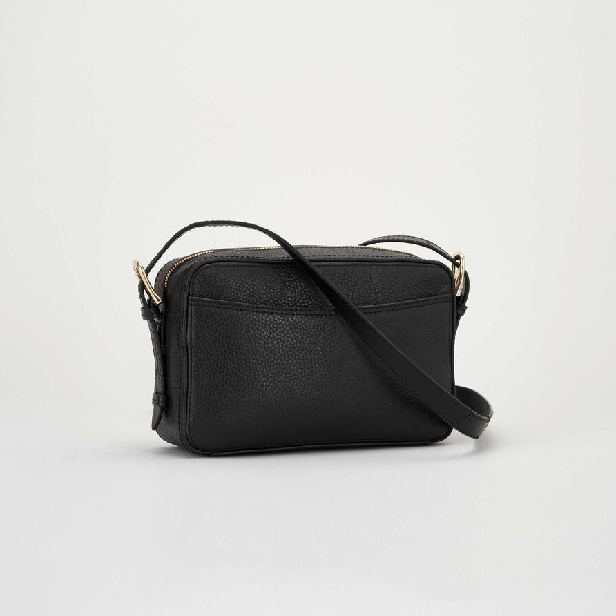Utvendig på vesken er det plassert en glidelåslomme i front, og en åpen lomme på baksiden. Innvendig har vesken en lomme som lukkes med glidelås.
